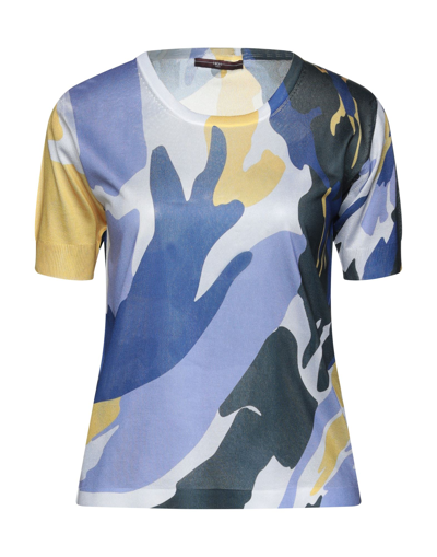 knitted, brand logo, multicolor pattern, round collar, short sleeves, no pockets, lightweight knit , Color: Blue , Size: XL