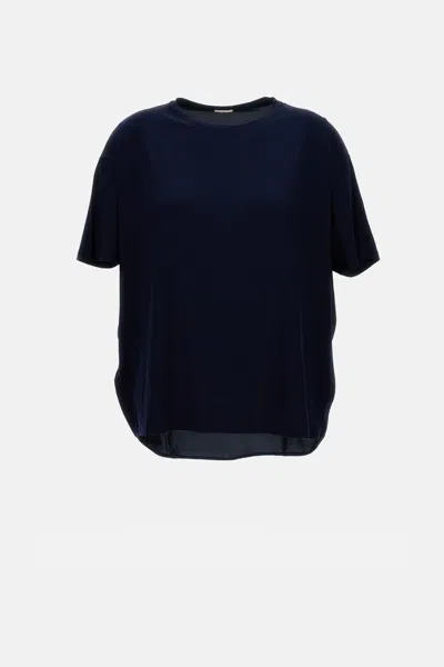 Women's crew-neck T-shirt. Stretch fabric and over fit. Dark blue colour. Made in Italy