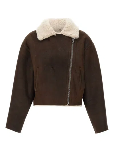 dark brown shearling reversible asymmetric zip fastening welt pockets