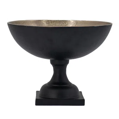 10 Inch Vintage Style Accent Bowl, Gold, Antique Black, Pedestal Stand