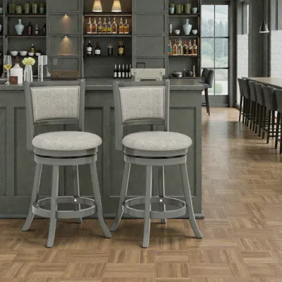 2-piece Swivel Bar Stools With Cushioned Seat And Backrest In Gray