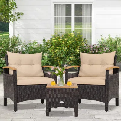 3 Pieces Patio Rattan Furniture Set With Removable Cushions-beige