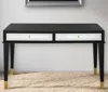 Don't settle for a boring entryway, upgrade your home with our 47-inch black silver and gold wood console table and drawers today. This rectangular table is ideal for up against the wall, can free stand in a room, or sit behind the sofa perfectly. This table has a top made with black and silver manufactured wood that is known for durability and easy maintenance. The four leg base is made of solid wood, the most strong and durable option available. Ideal for living rooms, bedrooms, home offices, and lounge areas, this console table is not only good looking but multi-functional and practical addition to your space. 29.5-inch h x 47.2-inch w x 15.7-inch d