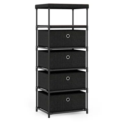 Storage Tower With Fabric Drawers, Rustic Wood Top & Metal Frame - Ideal For Small Spaces In Black