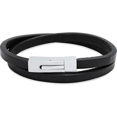 HMY JEWELRY Leather Wrap Bracelet In Silver/black