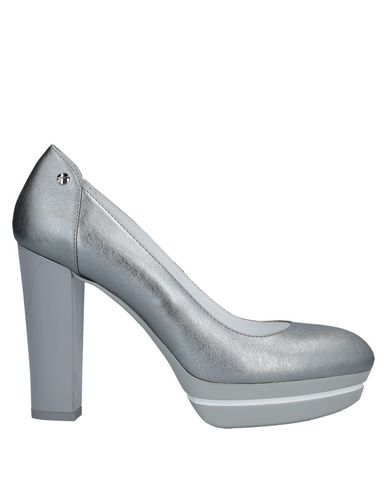 laminated effect, logo, solid color, round toeline, square heel, leather lining, rubber sole, contains non-textile parts of animal origin , Color: Grey , Size: 6