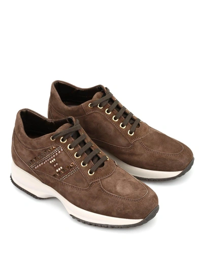 Suede Interactive detailed with rhinestones and little studs on side H logo, visible stitchings, contrasting sole, cotton laces, logo label on tongue and detachable fussbett, designer dustbag included. This shoes are roomy, for a proper fitting please choose one size lower than yours. Composition: 100% Camoscio