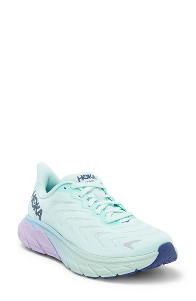 HOKA's Arahi 6 support trainers combine maximum cushioning with a remarkably light weight. Featuring the brand's J-Frame midsole support, and a recycled mesh lining, these versatile running trainers are both responsive and breathable. Best for: Road running Weight: 216g Heel-to-toe-drop: 5mm Features Ride: Moderate Cushioning: Balanced - HOKA Arahi 6 - Sunlit Ocean/Lilac Mist - UK 8