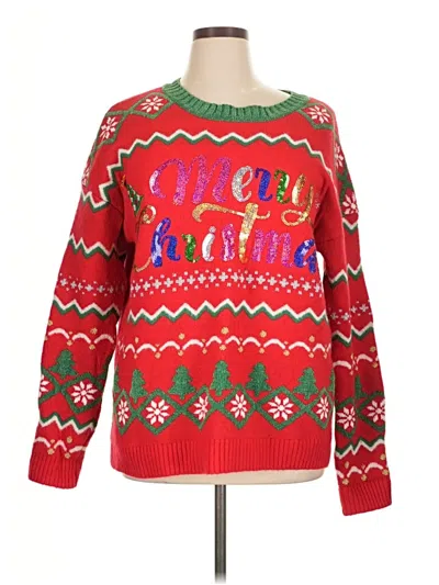 Holiday Time Pullover Sweater, Size: X-Large. Item Details: Red, Crew Neck, Long Sleeve, Women's Tops, Polyester/Acrylic/Nylon