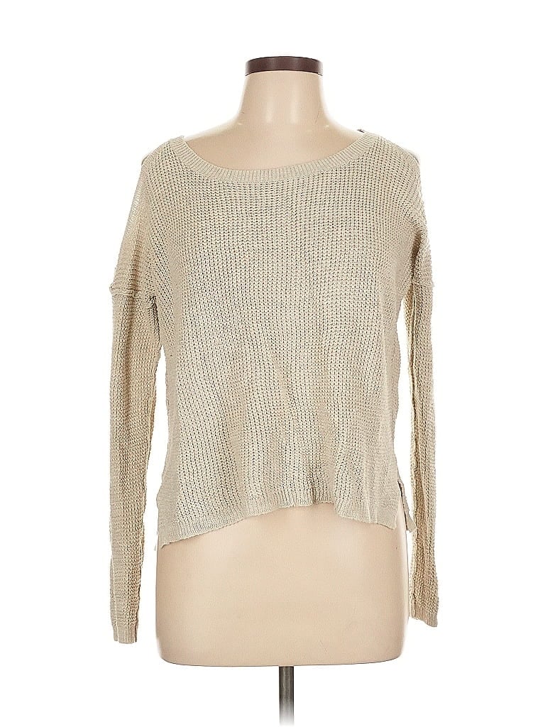 Hollister Pullover Sweater, Size: Large. Item Details: Tan, Metallic Pattern, Scoop Neck, Long Sleeve, Women's Tops, Cotton/Polyester/Acrylic