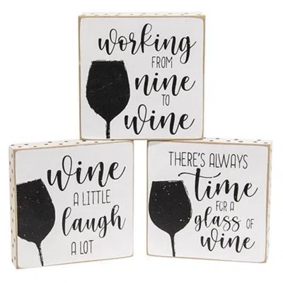 HOMEGIFO Always Time For Wine Polka Dot Square Block 3 Asstd. In White