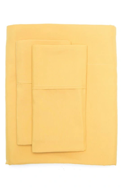 Add a pop of color to any bedroom with a comfy, 4-piece bed sheet set. Set includes: 1 fitted sheet1 flat sheet2 pillowcases 4-piece set 100% microfiber polyester Machine wash, tumble dry Imported