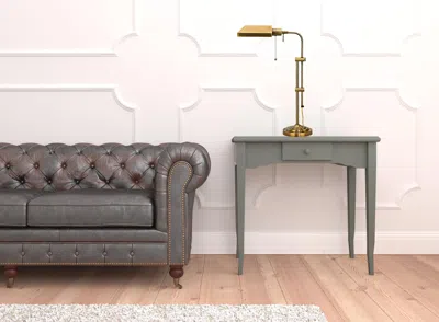 26" Bronze Metal Adjustable Table Lamp With Antiqued Brass Rectangular Shade In Gray