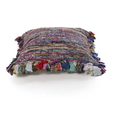 HOMEZIA 26" X 26" Blue And Red Weave Zippered Pillow With Fringe