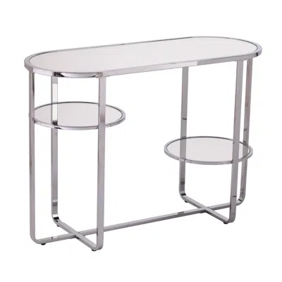 42" Clear And Silver Mirrored Glass Oval Frame Console Table With Storage