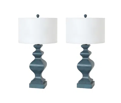 Embrace the good life with this hard working and stylish set of two 31" distressed teal table lamps with white drum shade. The base of this lamp is made of polyresin finished in a distressed teal tone. This standard table lamp is designed to provide general lighting to the area. The light that this lamp throws is soft and warm to elevate the look of most any space in your home. The perfect lamp to create just the right natural and soothing light in your space. 31" H x 6.25" W x 6.25" D