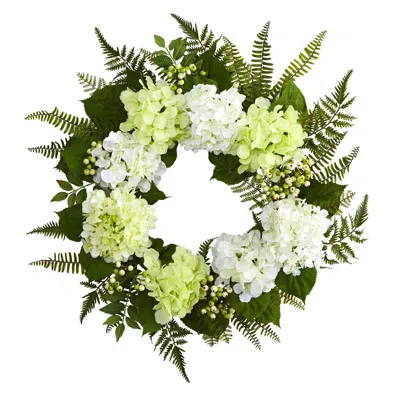 The elegant and subtle white and green flowers of the 24 " artificial hydrangea wreath make it the perfect decoration to add anywhere you want a touch of class. The green berries and leaves add to the overall bright, stylish look.Specifications - Height - 24 in. Width - 24 in. Depth - 5 in. Package includes - 1 x 24" Hydrangea Berry Wreath - WhitePROP65 Warning - This product contains a chemical known to the State of California to cause cancer.*Decorations and accessories are not included. *Images shown are only a representation and may vary.