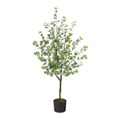 Bring home the essence of the healing Eucalyptus with this artificial plant. Different shades of variegated green leaves stem from a thick realistic looking brown trunk. Native to Australia, add an exotic touch to spaces that need texture and some color. Standing 4' from a nursery planter, included in height, curate in compact spaces such as apartments, dorms, and awkward corners of bathrooms. Designer tip - Many crafters decorate this plant in tandem with other herbs and mixed greens.Specifications - Height - 4 Ft. Width - 14 In. Depth - 14 In. Pot Size - H - 5 In. W - 6 In. D - 6 In. Package includes - 1 x 4" Eucalyptus Artificial TreePROP65 Warning - This product contains a chemical known to the State of California to cause cancer.*Decorations and accessories are not included. *Images shown are only a representation and may vary.