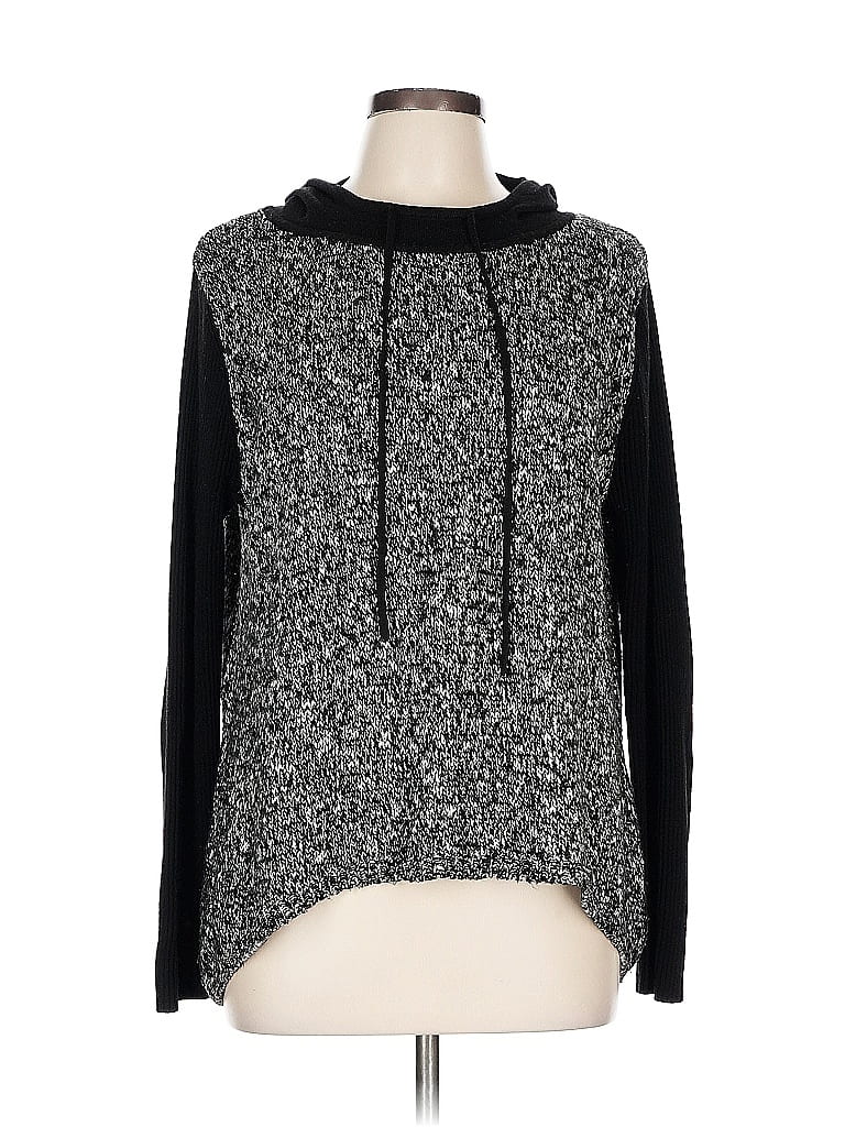 h.one Pullover Sweater, Size: Large. Item Details: Gray, Chevron/Herringbone Pattern, Cowl Neck, Long Sleeves, Women's Tops, Acrylic/Cotton/Wool, True To Size