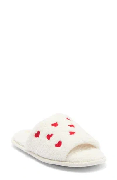 HONEYDEW Heart Embroidery Slide Slipper In White