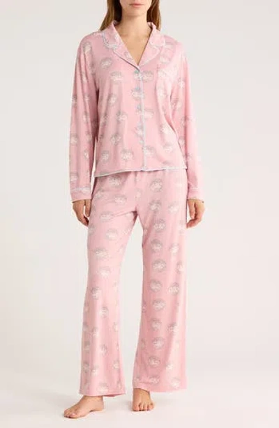 HONEYDEW Quiet Night Long Sleeve Button-up Top & Pants Pajamas In Pink
