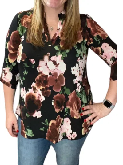 HONEYME Floral Gabby Tunic Top In Black Multi