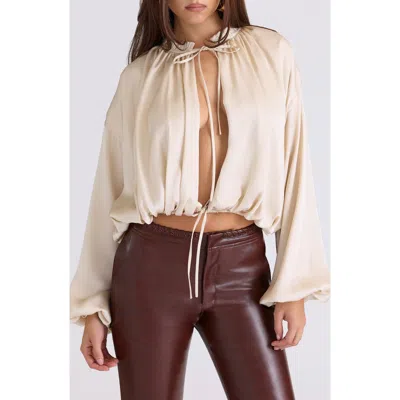 HOUSE OF CB Talia Open Front Matte Satin Top In Neutral
