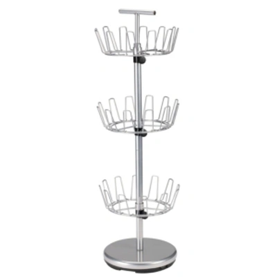 HOUSEHOLD ESSENTIALS 3-tier Revolving Shoe Rack Shoe Tree In Silver