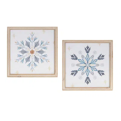 Get your home into the holiday spirit with this set of Holiday Snowflake Wall Prints! This festive wall art will bring warmth and holiday cheer to any room. With its wintry blue and white tones and modern snowflake design, this piece will make a memorable display. The MDF wood composition ensures a durable yet lightweight piece that will last for years to come. Add some holiday cheer to your home today with Holiday Snowflake Wall Prints!