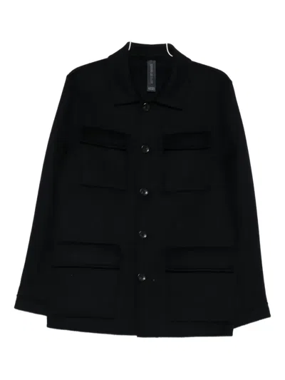 blue button fastening buttoned cuffs four flap pockets long sleeves