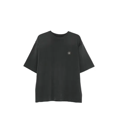 black logo print to the rear stud embellishment at the chest crew neck short sleeves straight hem