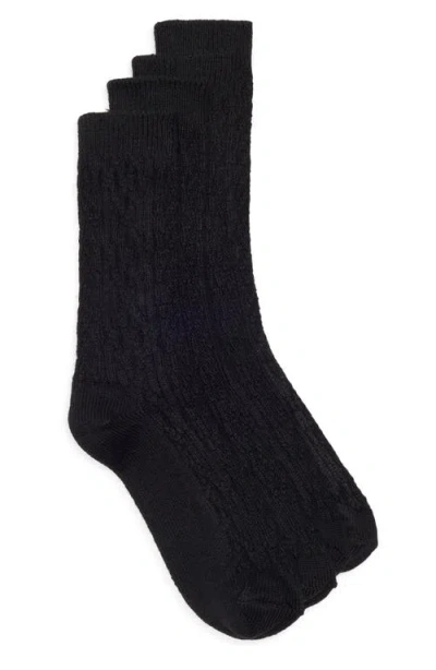 HUE Assorted 2-pack Cable Crew Socks In Black