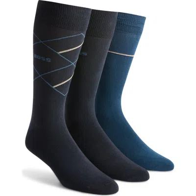 HUGO BOSS Boss Assorted 3-pack Icon Pattern & Solid Cotton Blend Dress Socks Gift Box In Multi