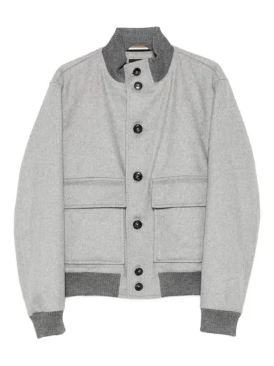 HUGO BOSS Boss Boss Grey Wool Jacket With Front Pockets In Gray