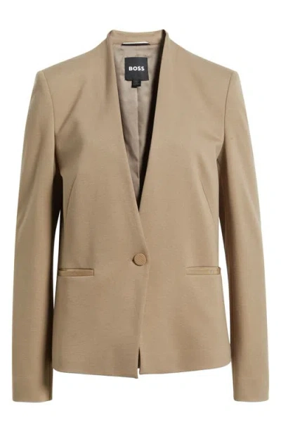 HUGO BOSS Collarless Regular-fit Blazer With Hardware Button In Neutral