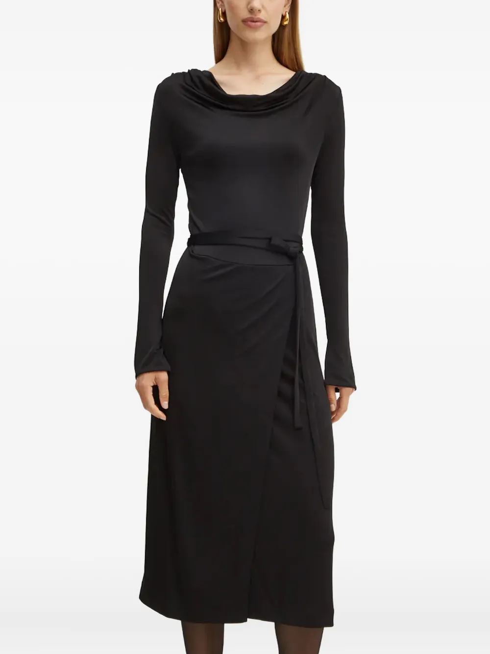 HUGO BOSS Cowl-neck Tie Midi Dress In Black