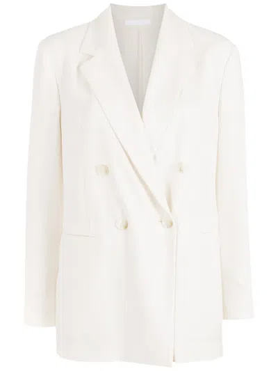 white recycled polyester-blend notched lapels long sleeves buttoned cuffs double-breasted button fastening two front welt pockets American rear vent POSITIVELY CONSCIOUS: This Planet Conscious product is crafted from certified recycled or upcycled materials, which helps you make a better choice for the environment as they generate less energy, save water and reduce the need for new raw materials. For recycled synthetic clothing products we highly recommend using a microfibre-catching washing bag to ensure that no microplastics that can pollute water are released in the process.