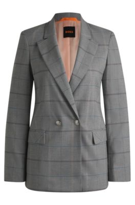 An elegant tailored jacket by BOSS. This modern piece is crafted in stretch fabric with a check pattern and a double-breasted front.