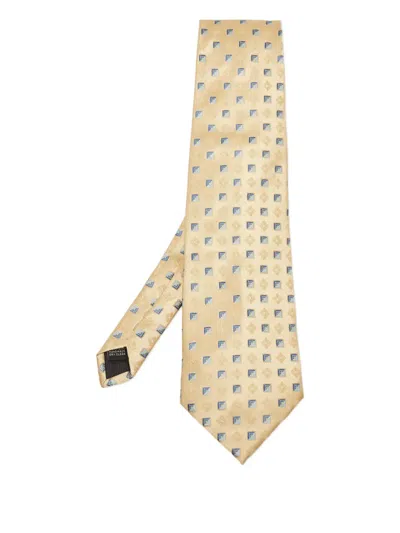 Pre-owned Geometric-pattern Silk Tie In Yellow