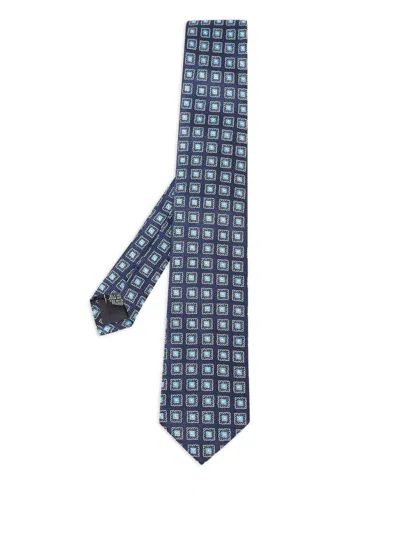 Pre-owned Geometric-patterned Silk Tie In Blue