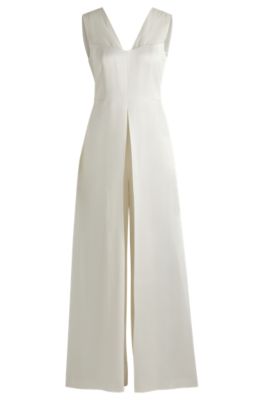 HUGO BOSS Jumpsuit In Lustrous Fabric With Layered Effect In White