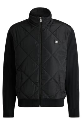 HUGO BOSS Mixed-material Jacket With Quilted Front Panel In Black