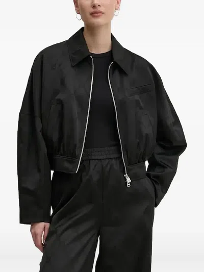 black monogram pattern zip fastening spread collar cropped