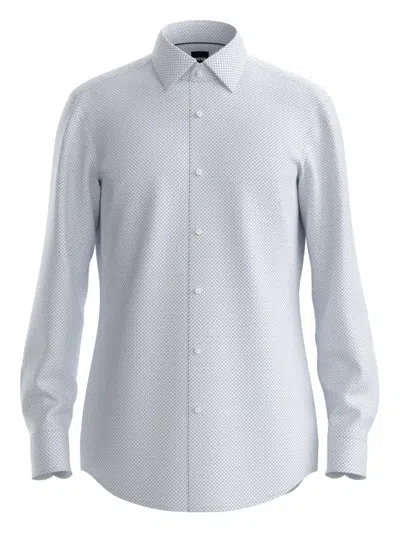 white and blue patterned front button fastening long sleeves buttoned cuffs