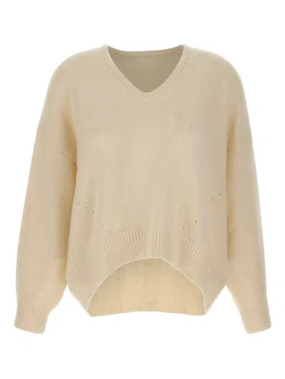 V-neckline Long sleeves with cuffs Perforated details Ribbed trim 44% polyamide, 34% alpaca, 22% wool SKU: 50550464118. Colour. : OPEN WHITE. Composition. : 44% poliammide 34% alpaca 22% lana. Country Of Manufacture. : Tunisia. MPN. : 50550464118. .