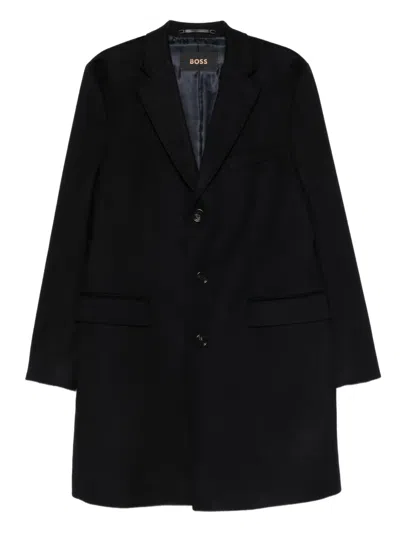 HUGO BOSS Structured Blue Coat With Tailored Design In Black