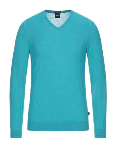 BOSS HUGO BOSS Sweaters. knitted, metal applications, logo, lightweight knit, v-neck, basic solid color, long sleeves, no pockets. 100% Virgin Wool