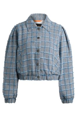 A contemporary tweed jacket with a button-up front by BOSS. This trend-driven piece is patterned all over with a denim check.