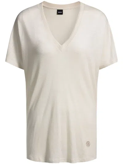 HUGO BOSS V-neck T-shirt With Double B Monogram In Open White