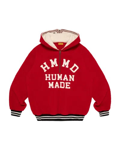 Half-zip fleece pullover features a soft sherpa lining, and the design features collegiate “HMMD HUMAN MADE” lettering across the chest. Finished with ribbed cuffs and hem. Red Sherpa lining Half-zip Graphic at front Body: 100% Polyester Rib: 100% Acrylic Tape: 87% Polyester, 13% Acrylic